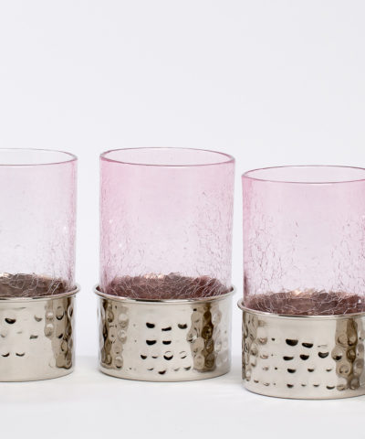 Service à eau en verre soufflé avec socles en cuivre martelé